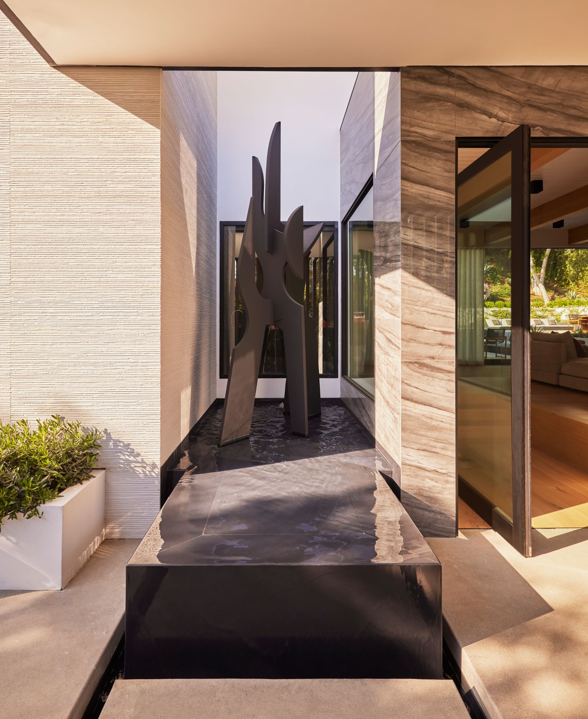 Fully renovated modern home in BHPO on a quiet street in Coldwater Canyon. Just beyond the front door, the formal living room has beamed ceilings and looks out to the backyard. The dining room conveniently blends into the kitchen which features gorgeous black marble counters and high-end appliances. Glass walls throughout the home allow natural light to fill the space and highlights the beautiful finishes and textures throughout the home. The spacious primary suite offers a spa-like bathroom. Oversized sliding doors open for seamless indoor/outdoor living and entertaining. The sparkling pool with oversized spa is surrounded by areas for lounging, a firepit with seating, room for dining al fresco, and lush landscaping. This exquisite home flawlessly combines luxury and tranquility, making it the perfect retreat for sophisticated living and entertaining.